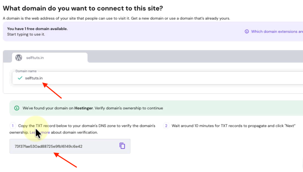 - TXT value = This will be the value copied from the new WordPress website which we did in previous step