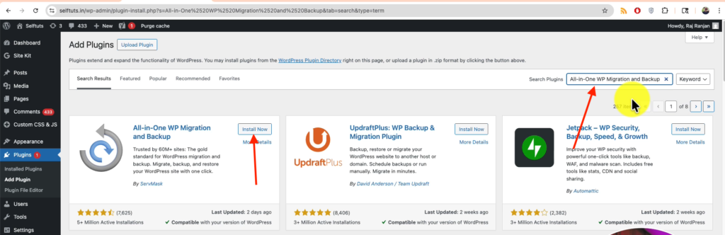 - Install All-in-One WP Migration. This step will be same how we did in the previous steps