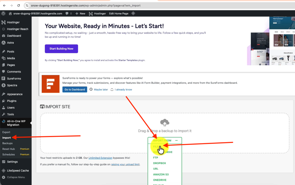 - Step 4: Import Website to Hostinger