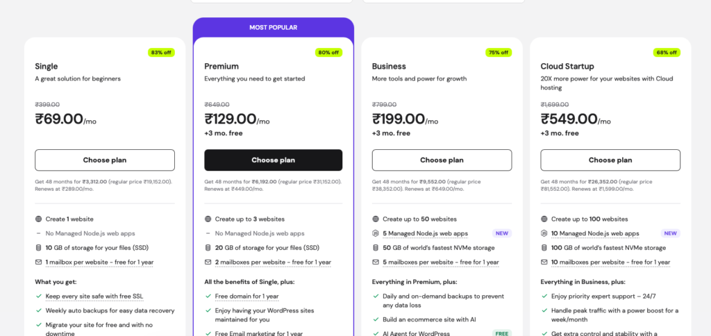 - Go to the Hostinger website and checkout their plans. The below plans are as on 19th March 2026