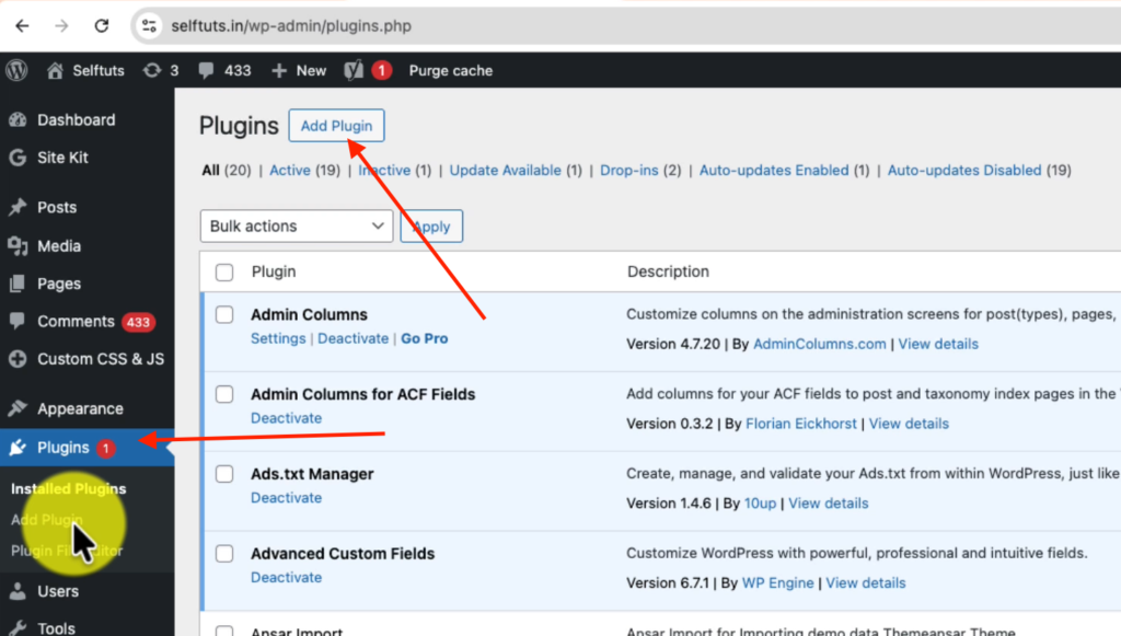 - Go to: Plugins → Add New