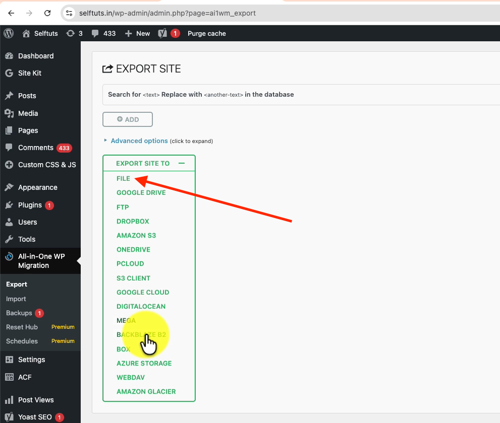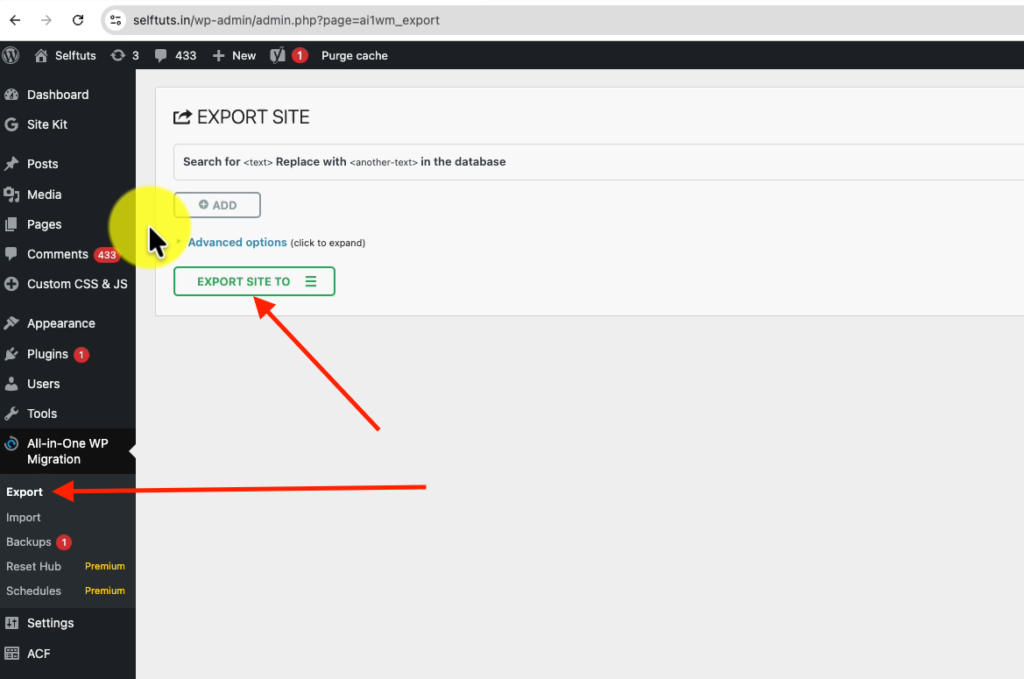 - Go to: All-in-One WP Migration → Export